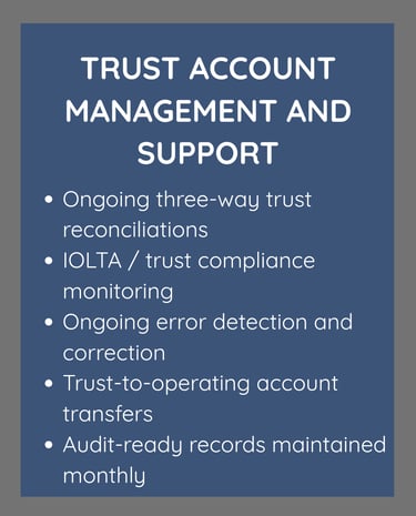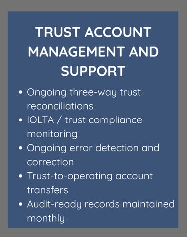 ELEVATE Legal Accounting provides legal bookkeeping, trust account management, and financial administration services designed specifically for law firms.
